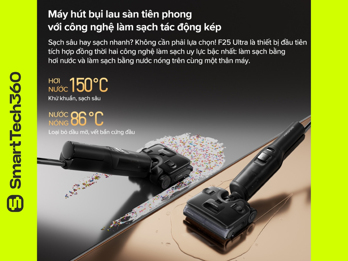 Với lực hút 22.000Pa, công nghệ hơi nước 150°C, nước nóng 86°C để xử lý dầu mỡ, thiết kế gập 180° FlatReach cùng bánh xe AI trợ lực SlideTech, F25 Ultra không chỉ làm sạch sâu mà còn biến việc dọn dẹp thành trải nghiệm nhẹ nhàng hơn bao giờ hết. Đặc biệt, dock sạc thông minh của máy có khả năng tự giặt con lăn bằng nước nóng 90°C và sấy khô – giúp duy trì độ sạch sẽ và tuổi thọ của thiết bị, gần như loại bỏ hoàn toàn việc vệ sinh thủ công.