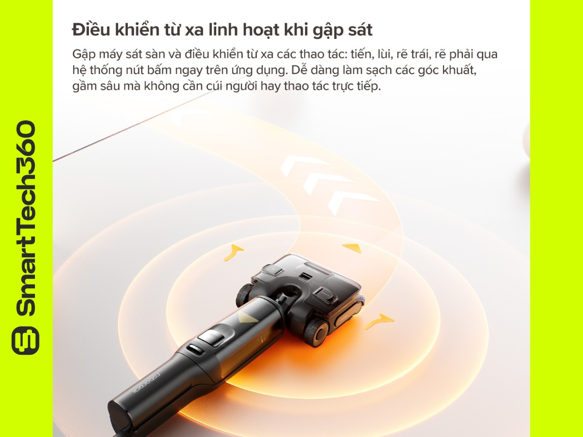 - Điều khiển máy khi gập sát sàn làm sạch gầm qua app Roborock.