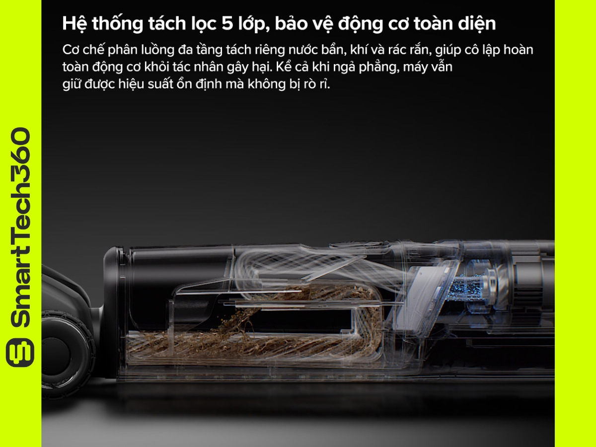 Sở hữu lực hút 22.000 Pa, hệ thống hơi nước 150°C cùng dock giặt – sấy nóng 90°C, máy không chỉ giúp sàn nhà sạch bóng mà còn diệt khuẩn sâu, loại bỏ mùi khó chịu và tiết kiệm đáng kể thời gian vệ sinh thủ công.