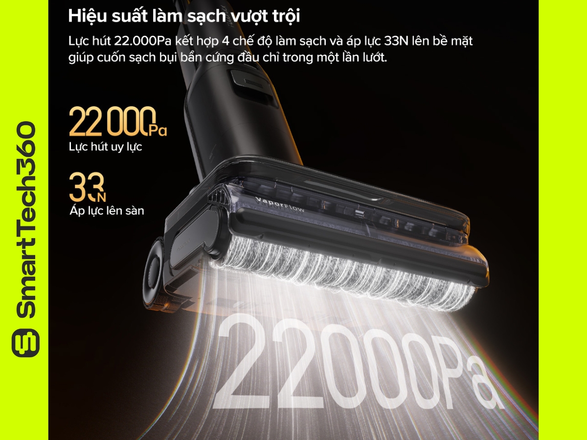 2.1. Lực hút mạnh mẽ 22.000Pa – Làm sạch sâu mọi bề mặt