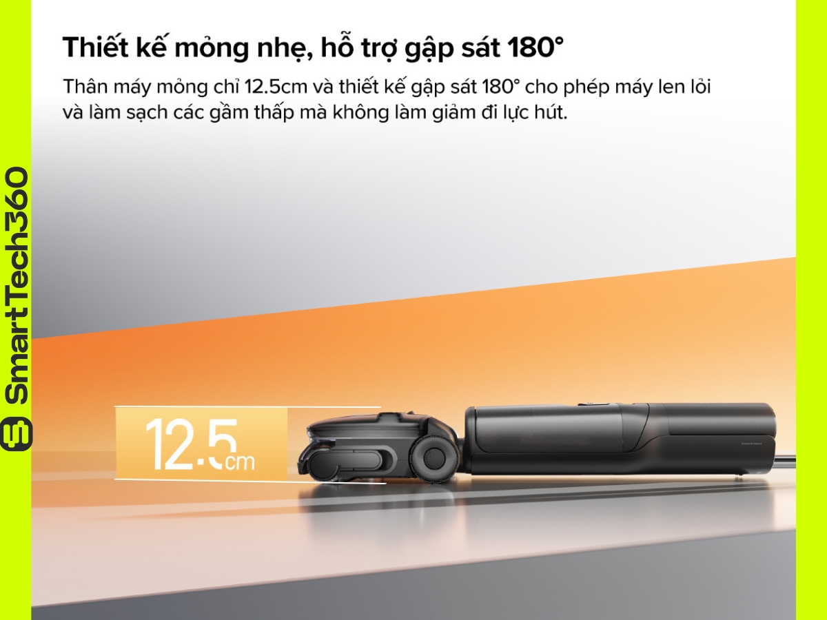 Thiết kế | Gập 180 độ FlatReach | Cho phép luồn sâu vào gầm giường, gầm tủ, gầm ghế mà không cần cúi người nhiều, giảm áp lực cho lưng và tay khi dọn dẹp. |