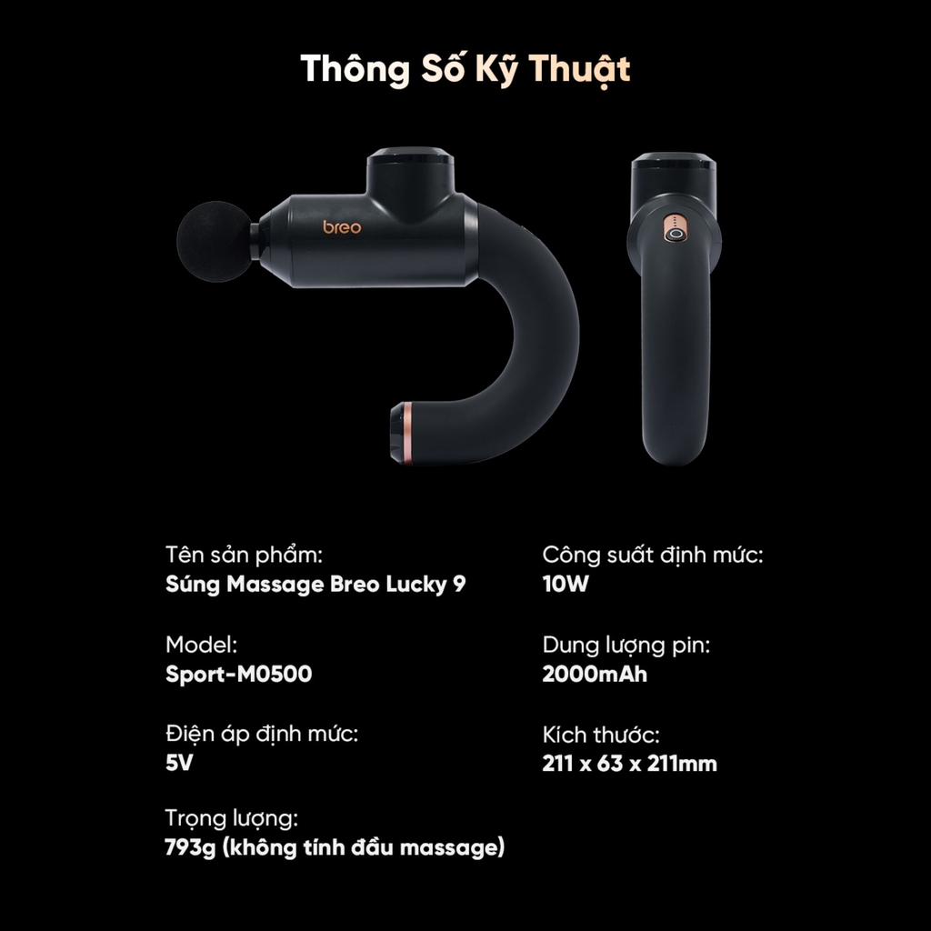Súng Massage Cầm Tay Breo Lucky 9 Mã hiệu Sport-M0500 là một thiết bị giãn cơ cao cấp, được thiết kế để mang lại trải nghiệm massage sâu và phục hồi chuyên nghiệp ngay tại nhà. Bài viết này sẽ đi sâu phân tích các đặc điểm nổi bật của Breo Lucky 9, giúp bạn hiểu rõ vì sao đây là sự lựa chọn hàng đầu cho việc chăm sóc cơ bắp sau tập luyện.